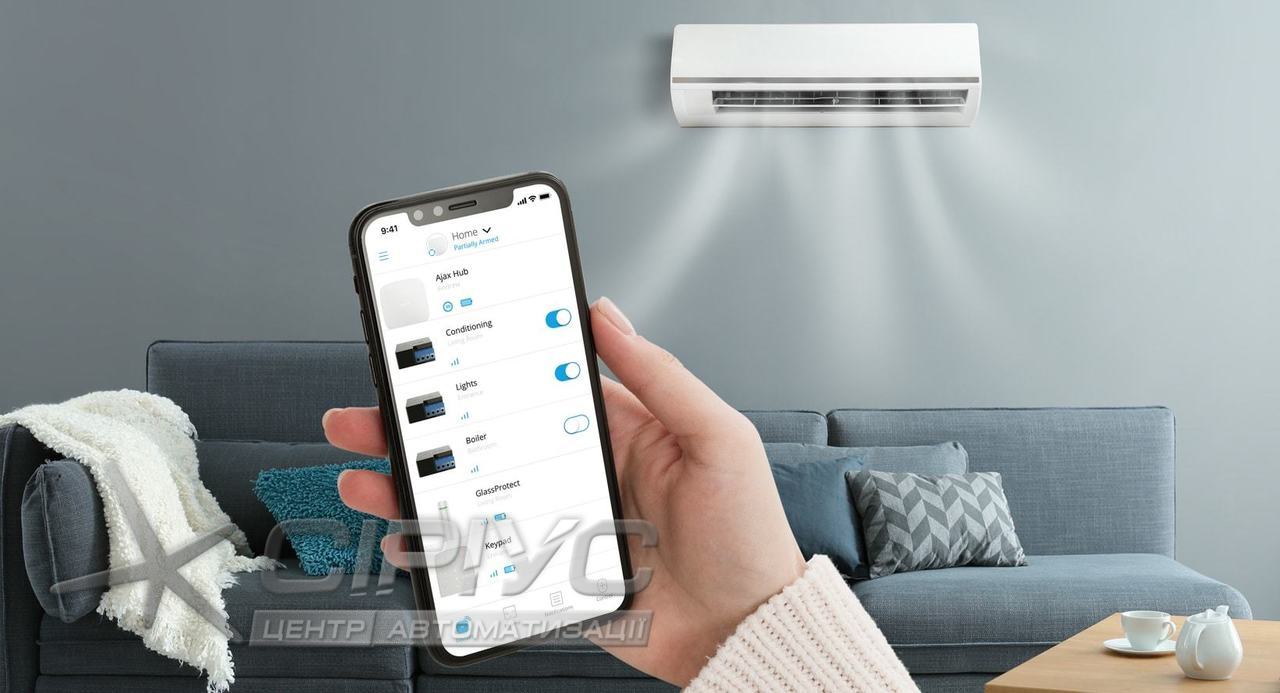 - Вмикає та вимикає побутові прилади в один дотик у мобільному застосунку.