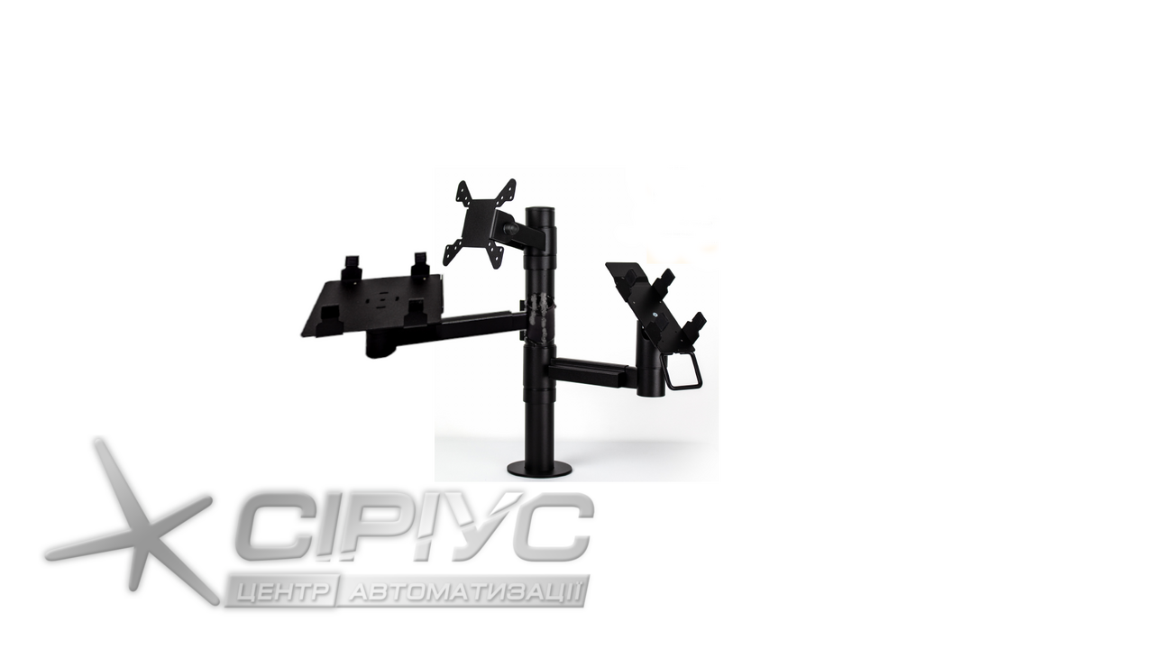 Касова стійка для обладнання з тримачем монітору (vesa), банківського терміналу та принтеру чеків. Виробництво Україна, матеріал сталь.