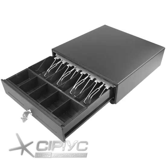ASAP POS L-330E - класична висувна грошова скриня, призначена для зберігання обігових коштів (купюр, монет) і чеків. Грошова скриня має внутрішній пластиковий вкладиш, який складається з 8 нерегульованих відділень для монет і 4 для банкнот, а також оснащений спеціальними металевими тримачами купюр.