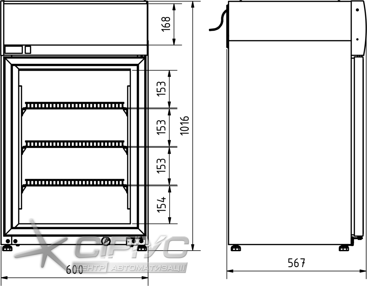 - Довжина/Ширина/Висота, мм: 600х567х1016.
