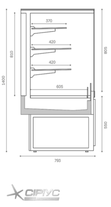 - Розміри (мм): висота 1400, довжина 1000, глибина 793.