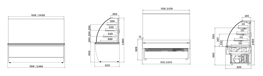 | Модель | Довжина, мм | Ширина, мм | Висота, мм | Глибина викладки по рівням, мм |