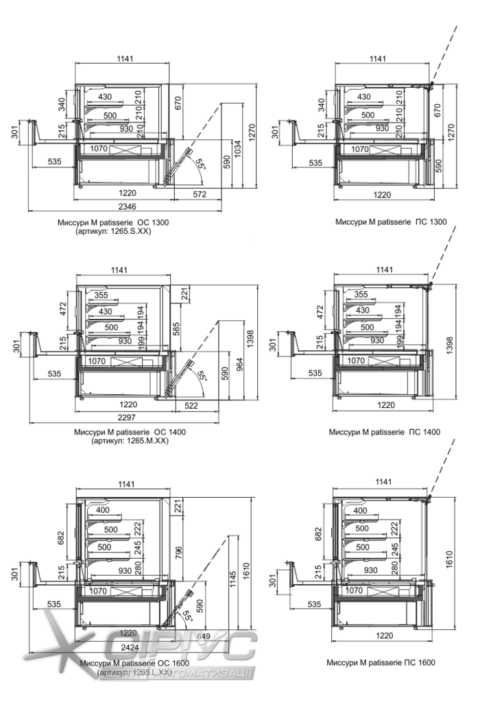 | ВХК(Д)-1,8 "Міссурі М Patisserie" | 1 875 | 1 240 | 1 280 |