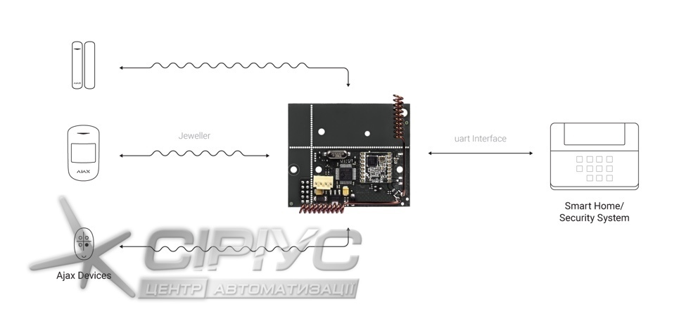 uartBridge. Модуль-приймач для підключення датчиків Ajax до бездротових охоронних і smart home систем.