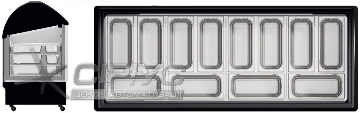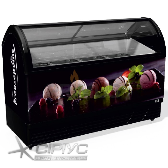 - Оригінальний дизайн і конструкція дозволяє демонструвати 12 видів кольорового морозива.