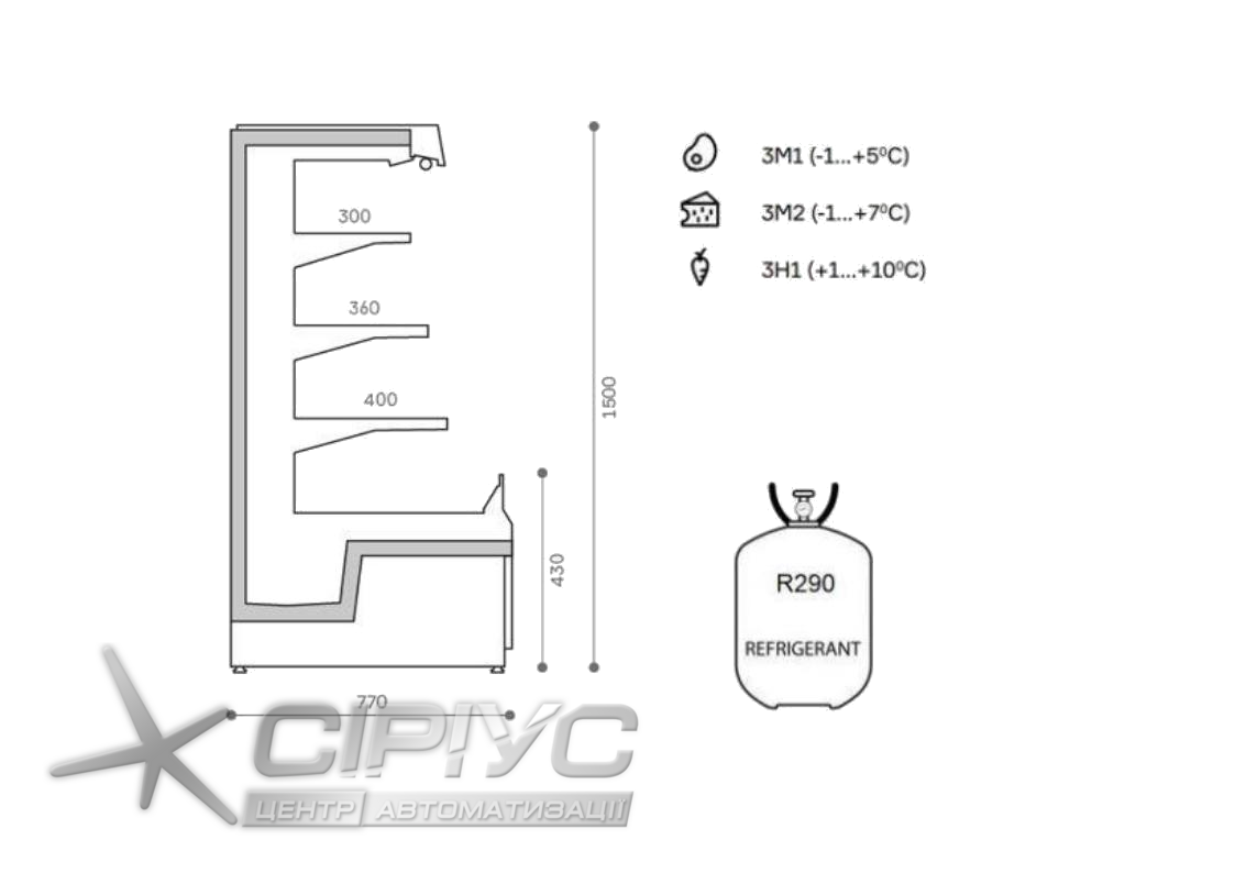 | Температура в корисному обсязі: | -1.. +5, -1.. +7, +1.. +10°С |