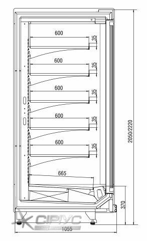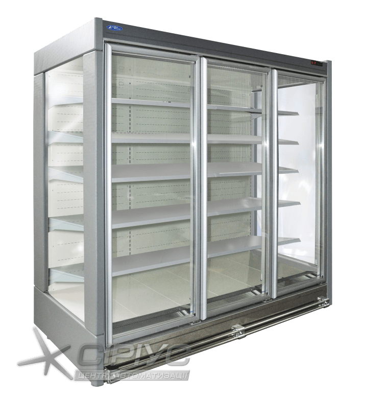 Випарник розміщено в нижній основі вітрини, що дає максимальну площу викладки для товару. Встановлені енергозберігаючі двері.