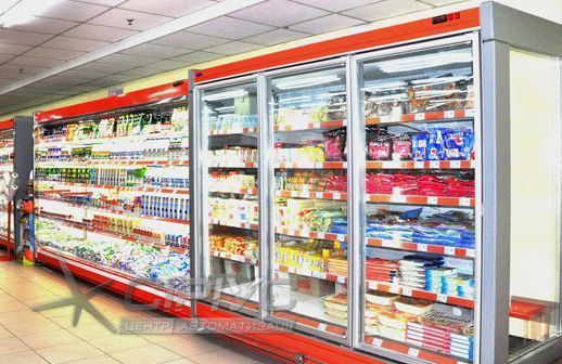 Вертикальні морозильні вітрини можуть вибудовуватися в острівні лінії посеред торгового залу. У такому випадку з боків розміщуються спеціальні бічні модулі-вітрини.