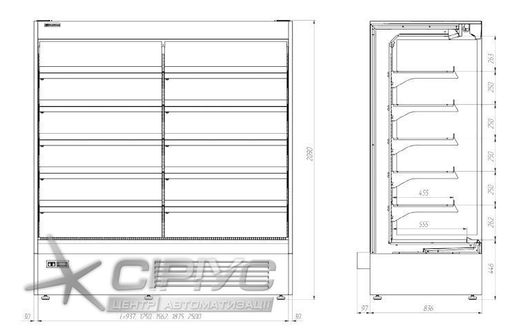- Для моделей з вбудованим холодозабезпеченням передбачений дуже низький фронт (446 мм), що дозволяє при стандартній висоті утворити 6 ступенів для викладання продукції в області найкращої доступності для споживача.