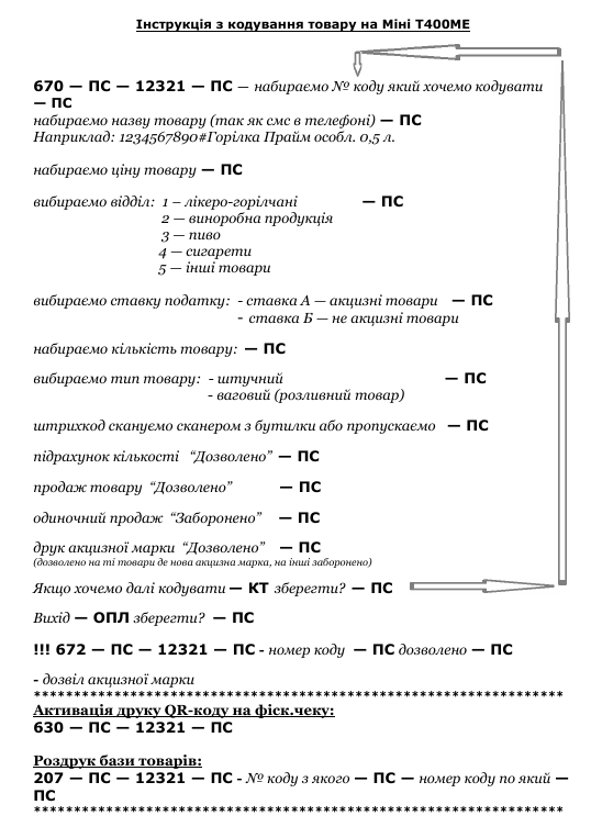 Рекомендації щодо введення атрибутів акцизної марки для ЕККА MINI T400МЕ