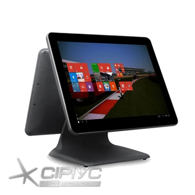 Він відмінно економить простір, тому що не потрібно підключати монітор і розміщувати безліч проводів, а також є менш енергозатратним у порівнянні з ПК. Прилад оснащений сенсорним LCD-екраном діагоналлю 15″ з ємнісною панеллю. Він виводить яскраве і чітке зображення, і відрізняється швидкістю і точністю розпізнавання дотиків. Перевагою також вважається простота і невибагливість в догляді. Яскравість дисплея становить 450 кд/м2. Розширення - 1024х768.