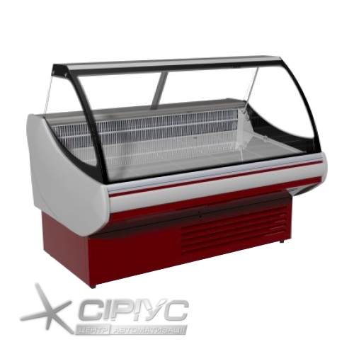 Дане обладнання виробляється з вбудованим агрегатом, фронтальним гнутим розпеченим склом. Панель управління оснащена термоконтролер Carel з функцією автоматичного відтаювання. Для більш ефективної роботи - обладнання вироблено з двома тенами, що має величезну перевагу на ряду з такими вітринами інших виробників. Демонстраційна частина і полка продавця зроблені з нержавіючої сталі. Шторки з оргскла, стаціонарна розетка - 220 В. Корпус - з фарбованого оцинкованого металу 0,65 міліметрів з пенополіуретановим заповненням.