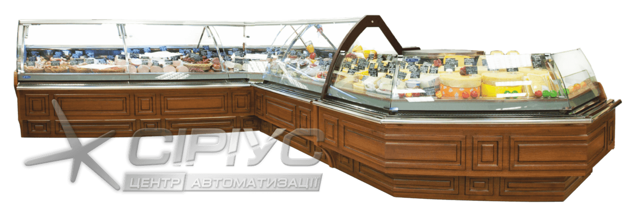 Холодильна вітрина "Джорджія" підходить як для звичайних магазинів так і для супермаркетів завдяки модифікаціям під виносний холод (вибудовування вітрин в лінію).