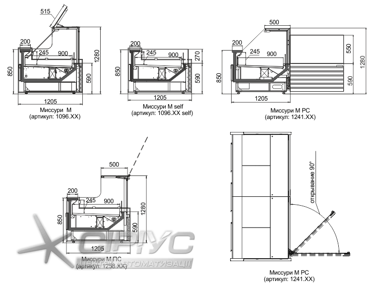 | ПВХС(Д)-1,25 "Міссурі М" | 1 250 | 1 205 | 1 280 | 900 |