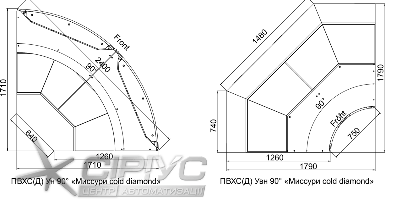 | "Міссурі М Cold Diamond" (кутова внутрішня) | 1 790 | 1 790 | 1 270 | 960 |