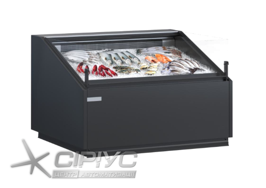 Вітрина холодильна Quadros Fish самообслуговування, виносний агрегат. Спеціальна гастрономічна вітрина для демонстрації свіжої риби на льоду.