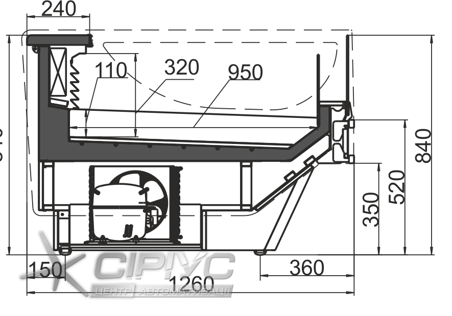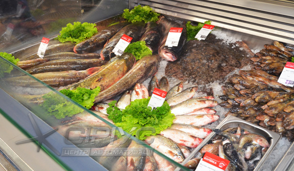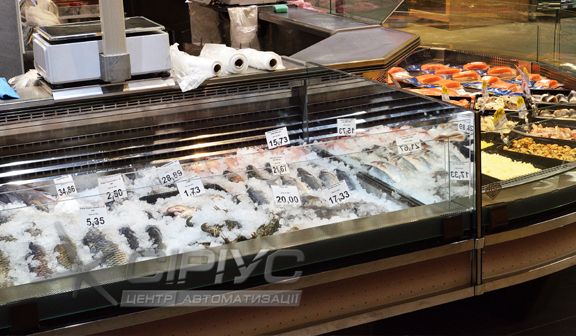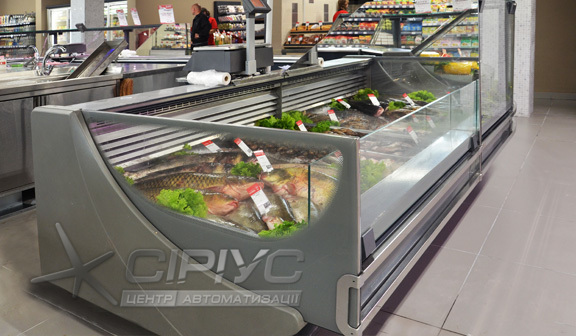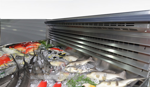 Холодильна вітрина для риби, яка розрахована під виносне холодопостачання і температурний режим -1.. +2 °С.