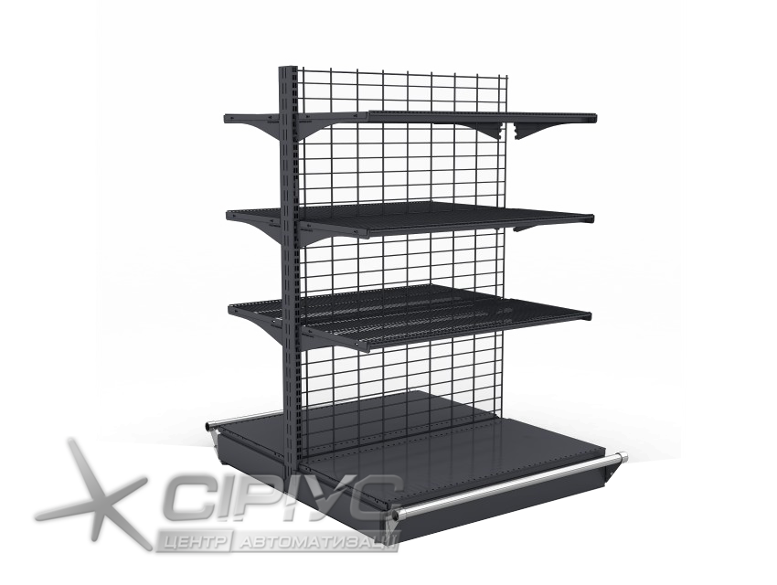 Cтелаж пристінний розробленний з урахуванням основних принципів мерчендайзингу: зручний і швидкий пошук потрібних товарів, викладка за товарними групами. Стелаж має модульний тип конструкції, що дозволяє максимально ефективно використовувати торговий простір будь-яких форматів.