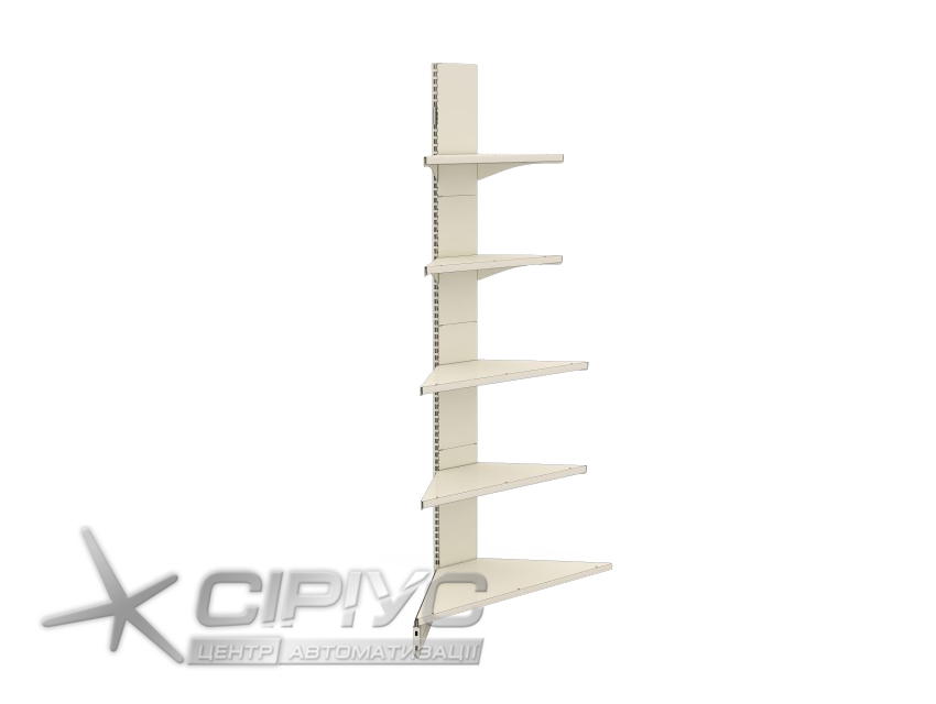 Кутовий стелаж комплектується так як і сусідні з ним секції торгового устаткування. Доповнюючи обладнання, даний стелаж виконує дуже важливу функцію - створює завершену композицію торгового ряду.