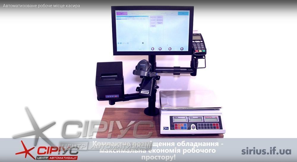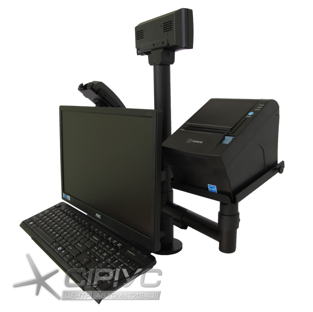 Універсальні стійки для кріплення торгового обладнання на робочому місці касира (Литва).