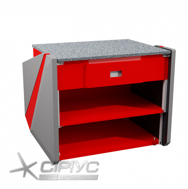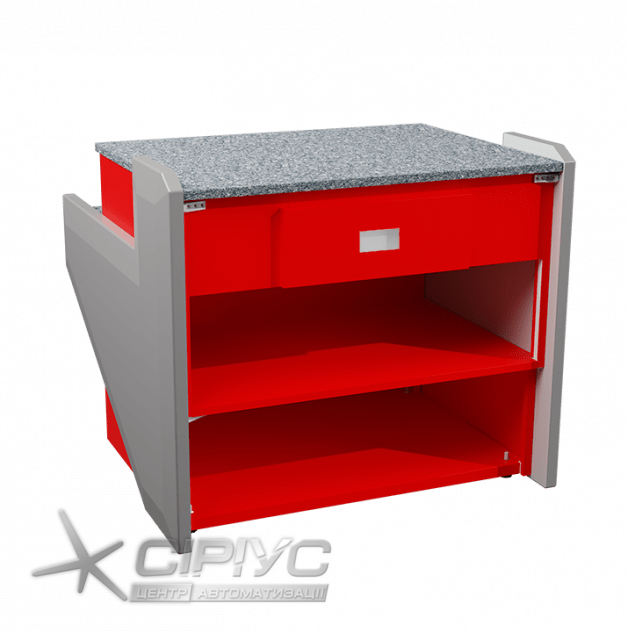 Для зручності прилавок оснащений висувним ящиком з доводчиком, а також гранітної стільницею.