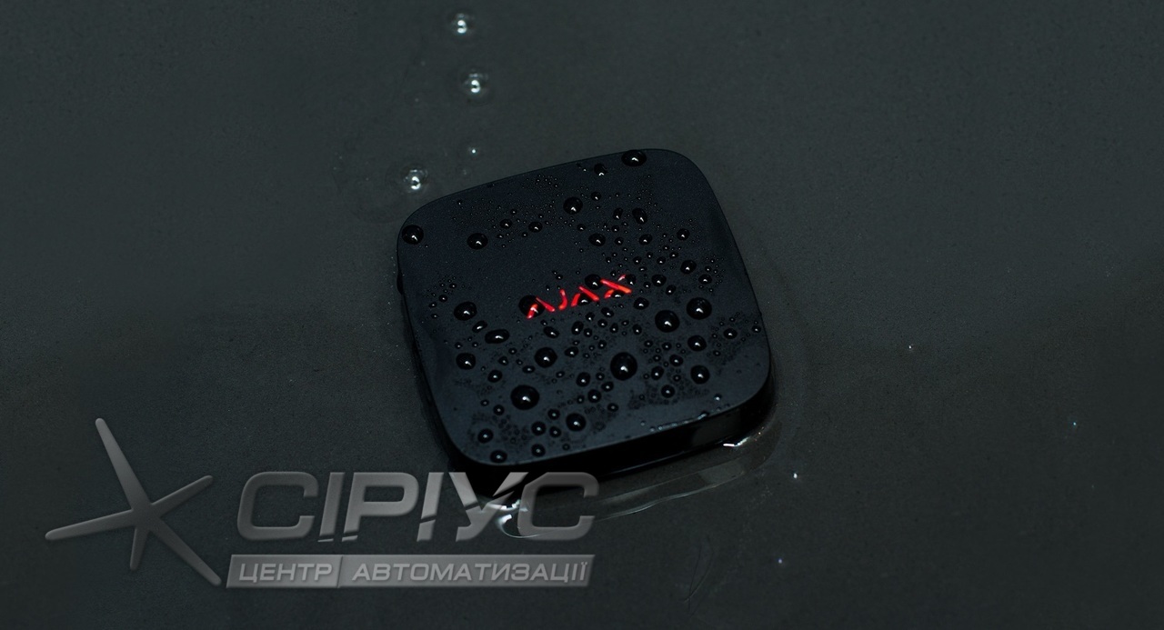 - Б’є тривогу, щойно вода потрапляє хоча б на одну із чотирьох пар контактів.